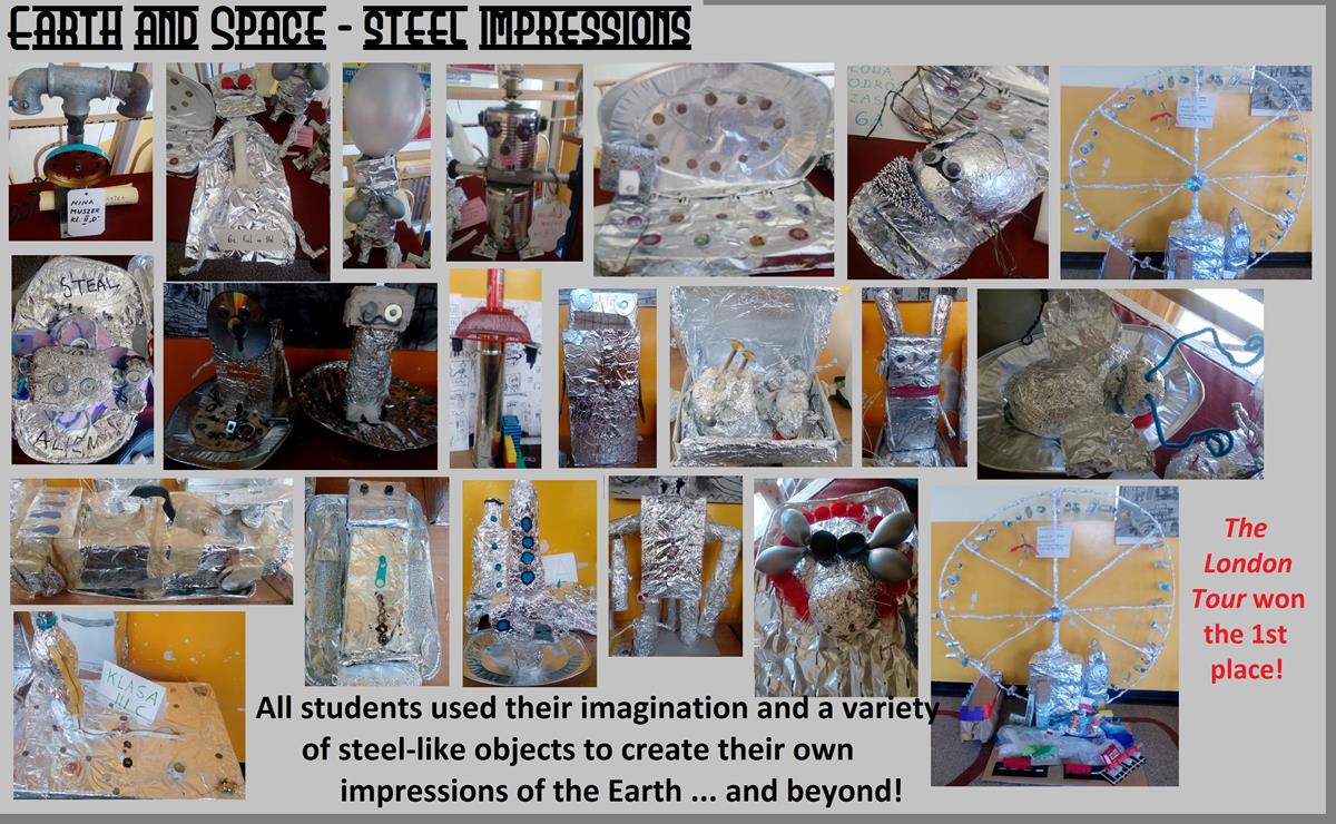 All the students took part in steel art workhops, during which they produced a variety of objects realted to the Earth and Space from steel-like products: aluminium foil, silvery tissue paper, wire, bolts and nuts and many more. They also took part in the Industry Presentations, during which the Polish students showed and discussed their research results in the area of the 16th and 17th century industry.