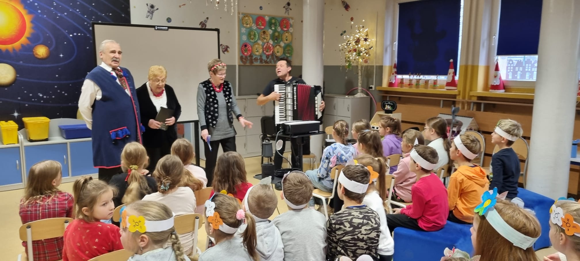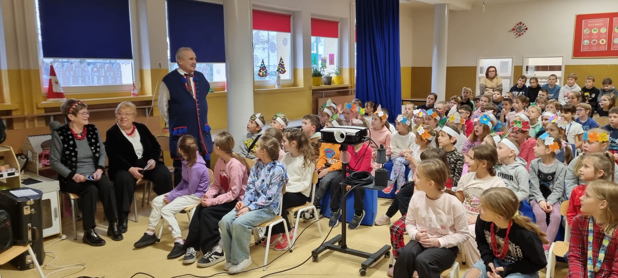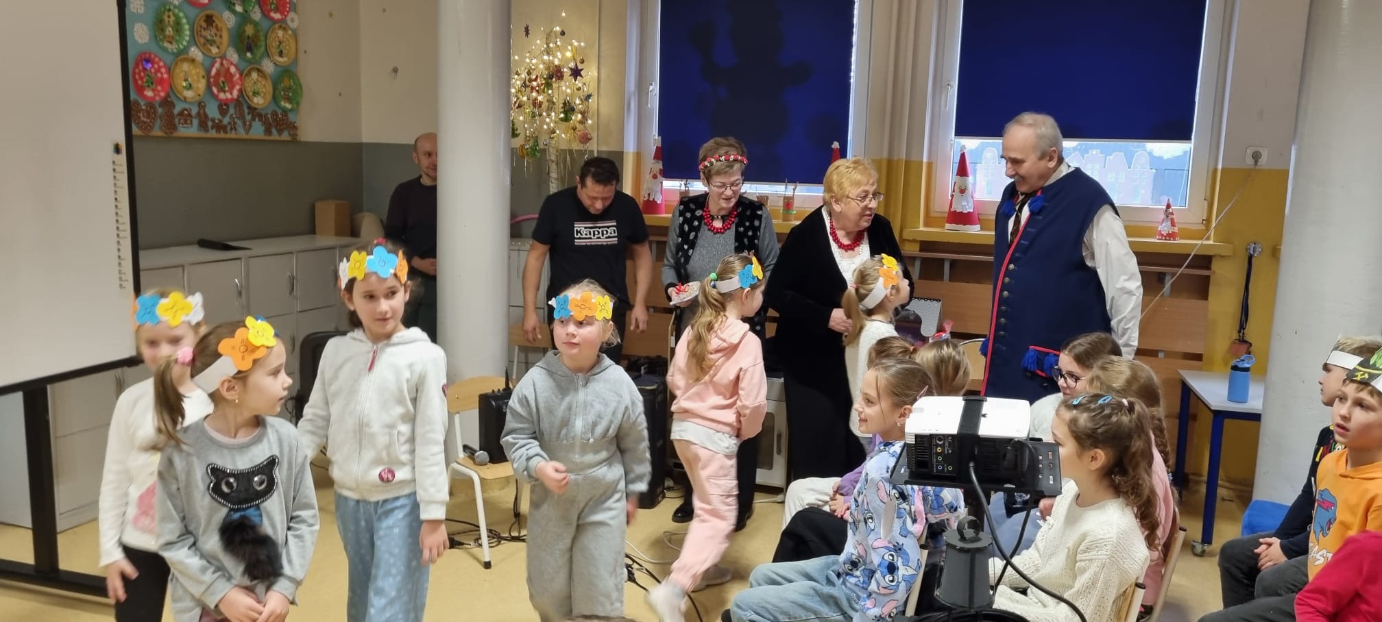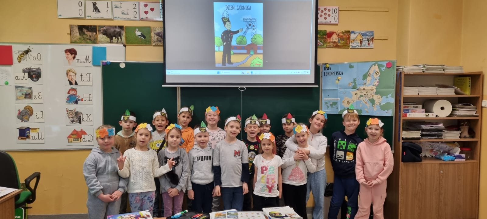 Z okazji Barbórki zaprosiliśmy do naszej szkoły członków zespołu Koła Miłośników Śląskiej Pieśni z MDK "Ligota" w Katowicach, którzy zaprezentowali przy akompaniamencie akordeonu kilka pieśni wykonywanych w śląskiej gwarze. Wydarzenie miało na celu kultywowanie lokalnych tradycji, przybliżenie najmłodszym bogactwa kultury regionu oraz pokazanie, jak ważne jest pielęgnowanie śląskiego dziedzictwa. Dziewczynki z klasy pierwszej wykonały wianki, a chłopcy mieli opaski z czapką górnika. Uczniowie obejrzeli film edukacyjny "W kopalni" Wspólnie zaśpiewaliśmy piosenkę "Poszła Karolinka do Gogolina" "Szła dzieweczka do laseczka" Milena z klasy 3a recytowała w ślōnskij godce wiersz "Pan Hilary" Zuzia i Kornelia zaśpiewały piosenkę "Wodzionka” Wydarzenie było piękną okazją do poznania tradycji górniczych oraz doświadczania żywej kultury Śląska w bezpośrednim kontakcie z jej wykonawcami. Dzieciom szczególnie podobał się utwór - hymn naszej dzielnicy "Ciecze woda bez Ligota" Panowała radosna, pełna energii atmosfera, sprzyjająca wspólnej zabawie i nauce.