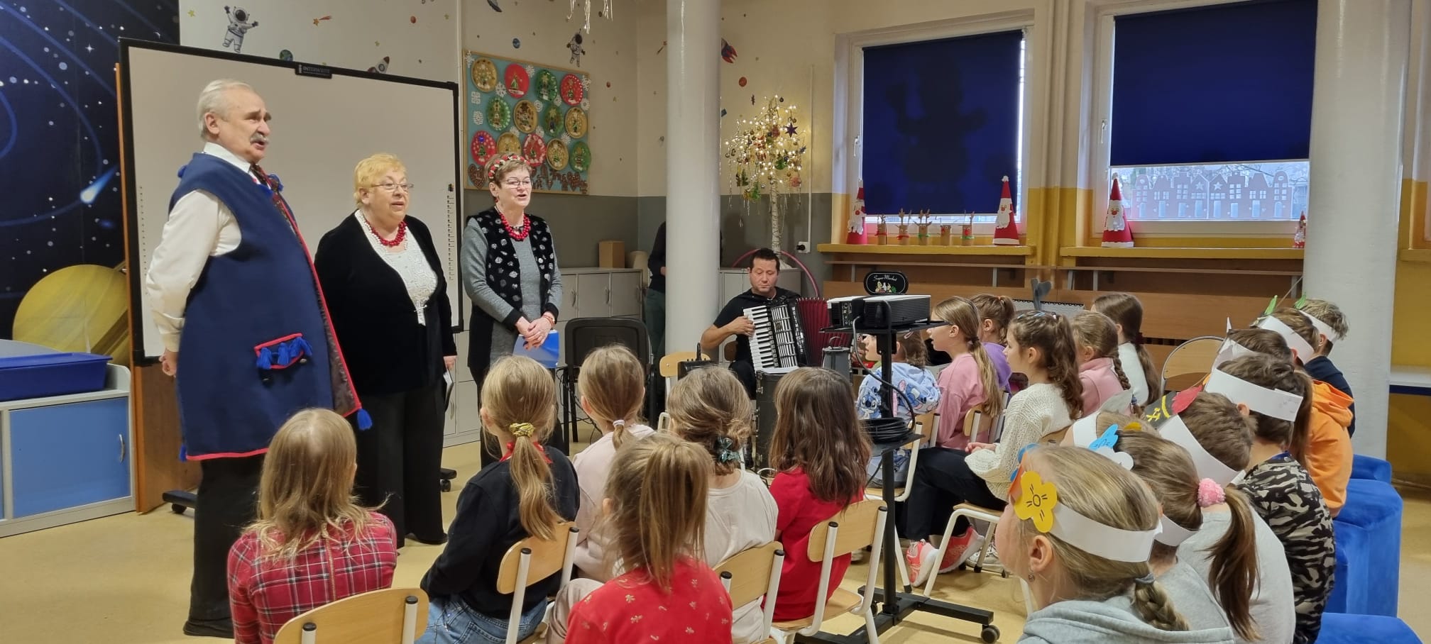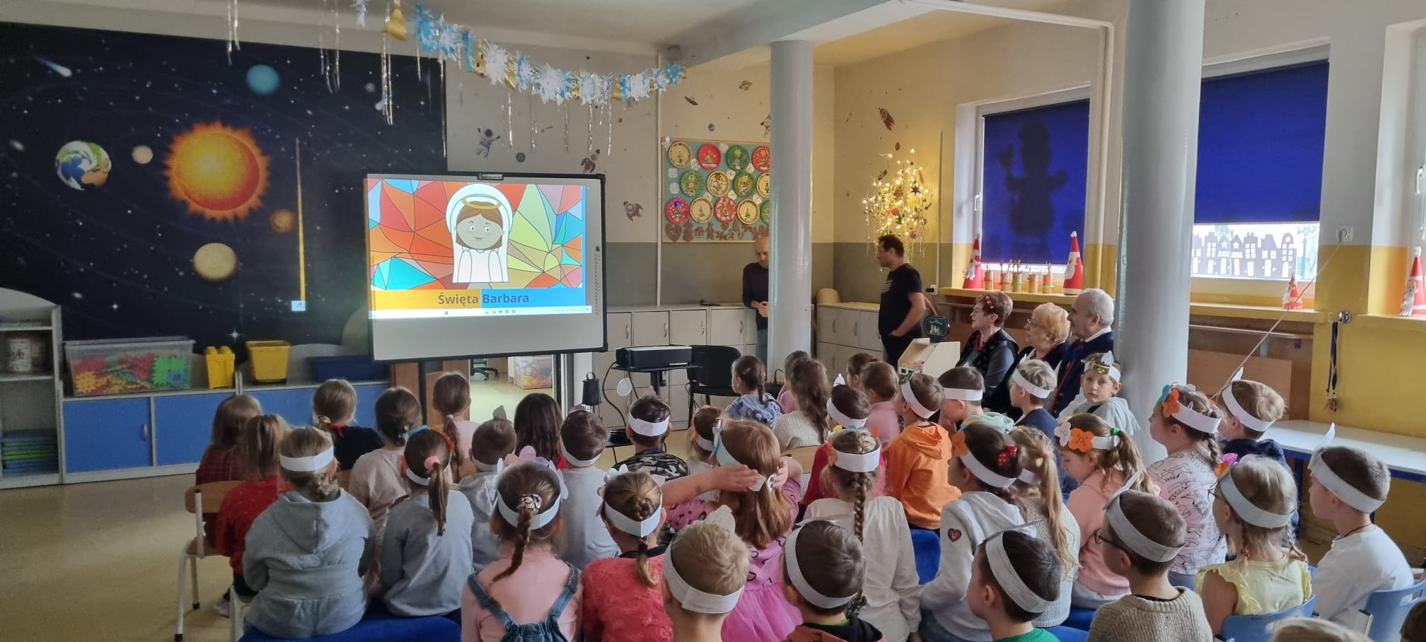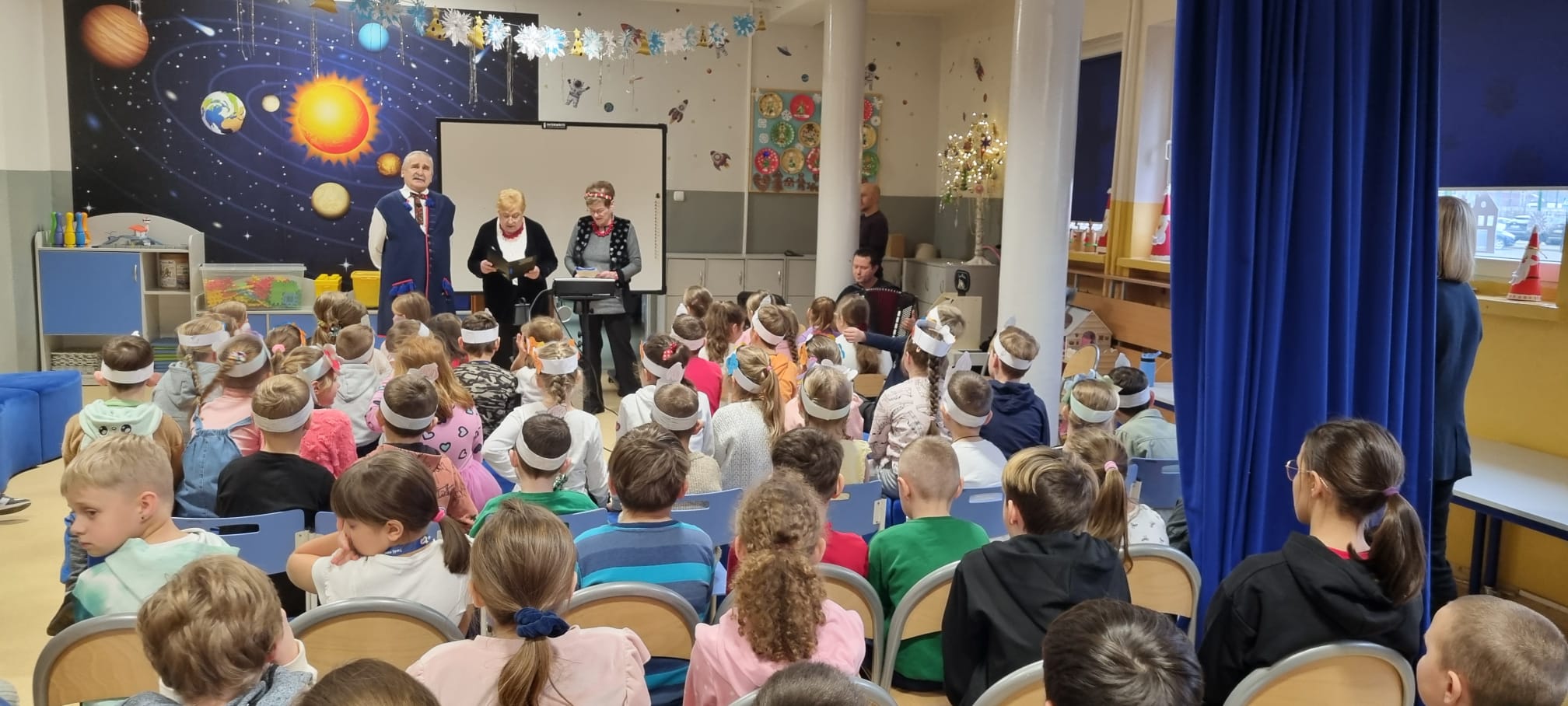 Z okazji Barbórki zaprosiliśmy do naszej szkoły członków zespołu Koła Miłośników Śląskiej Pieśni z MDK "Ligota" w Katowicach, którzy zaprezentowali przy akompaniamencie akordeonu kilka pieśni wykonywanych w śląskiej gwarze. Wydarzenie miało na celu kultywowanie lokalnych tradycji, przybliżenie najmłodszym bogactwa kultury regionu oraz pokazanie, jak ważne jest pielęgnowanie śląskiego dziedzictwa. Dziewczynki z klasy pierwszej wykonały wianki, a chłopcy mieli opaski z czapką górnika. Uczniowie obejrzeli film edukacyjny "W kopalni" Wspólnie zaśpiewaliśmy piosenkę "Poszła Karolinka do Gogolina" "Szła dzieweczka do laseczka" Milena z klasy 3a recytowała w ślōnskij godce wiersz "Pan Hilary" Zuzia i Kornelia zaśpiewały piosenkę "Wodzionka” Wydarzenie było piękną okazją do poznania tradycji górniczych oraz doświadczania żywej kultury Śląska w bezpośrednim kontakcie z jej wykonawcami. Dzieciom szczególnie podobał się utwór - hymn naszej dzielnicy "Ciecze woda bez Ligota" Panowała radosna, pełna energii atmosfera, sprzyjająca wspólnej zabawie i nauce.
