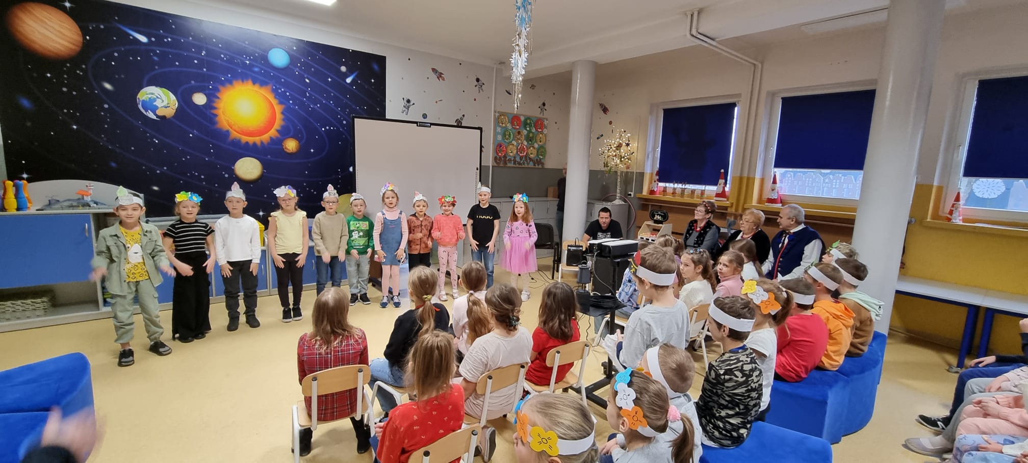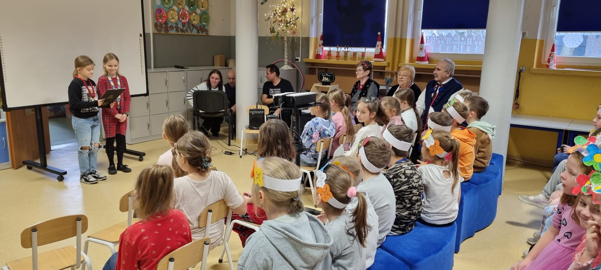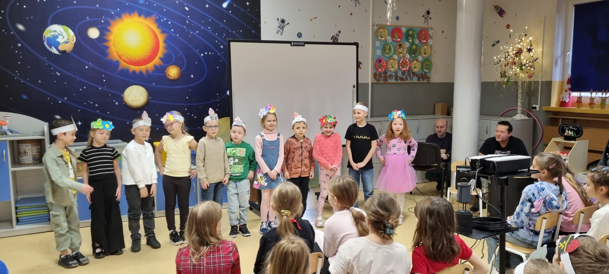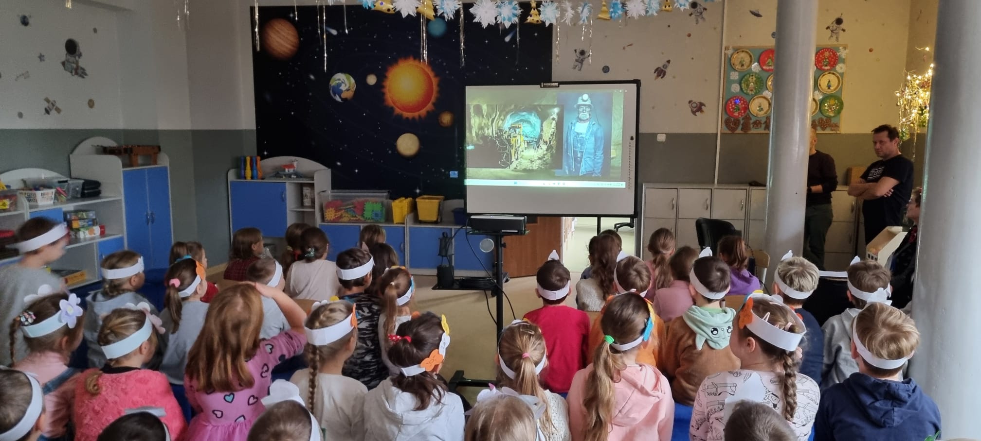 Z okazji Barbórki zaprosiliśmy do naszej szkoły członków zespołu Koła Miłośników Śląskiej Pieśni z MDK "Ligota" w Katowicach, którzy zaprezentowali przy akompaniamencie akordeonu kilka pieśni wykonywanych w śląskiej gwarze. Wydarzenie miało na celu kultywowanie lokalnych tradycji, przybliżenie najmłodszym bogactwa kultury regionu oraz pokazanie, jak ważne jest pielęgnowanie śląskiego dziedzictwa. Dziewczynki z klasy pierwszej wykonały wianki, a chłopcy mieli opaski z czapką górnika. Uczniowie obejrzeli film edukacyjny "W kopalni" Wspólnie zaśpiewaliśmy piosenkę "Poszła Karolinka do Gogolina" "Szła dzieweczka do laseczka" Milena z klasy 3a recytowała w ślōnskij godce wiersz "Pan Hilary" Zuzia i Kornelia zaśpiewały piosenkę "Wodzionka” Wydarzenie było piękną okazją do poznania tradycji górniczych oraz doświadczania żywej kultury Śląska w bezpośrednim kontakcie z jej wykonawcami. Dzieciom szczególnie podobał się utwór - hymn naszej dzielnicy "Ciecze woda bez Ligota" Panowała radosna, pełna energii atmosfera, sprzyjająca wspólnej zabawie i nauce.
